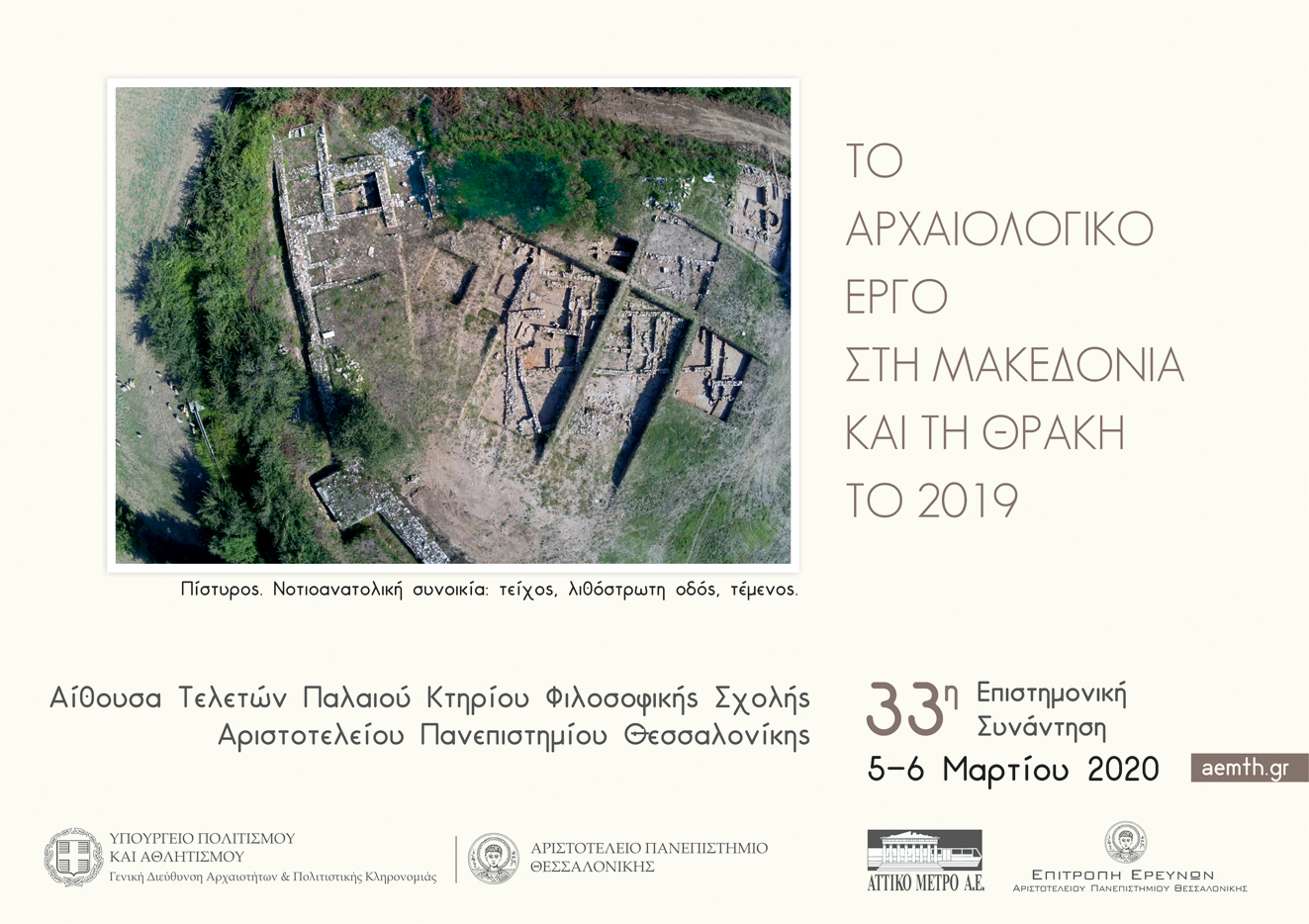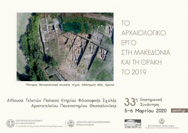 Mε 62 ανακοινώσεις και τη συμμετοχή 162 συνέδρων θα πραγματοποιηθεί για τριακοστή τρίτη (33η) συνεχή χρονιά η ετήσια επιστημονική συνάντηση με τίτλο «Το αρχαιολογικό έργο στη Μακεδονία και τη Θράκη το 2019», η οποία συνδιοργανώνεται από το Τμήμα Ιστορίας και Αρχαιολογίας του Αριστοτέλειου Πανεπιστημίου Θεσσαλονίκης και το Υπουργείο Πολιτισμού και Αθλητισμού.