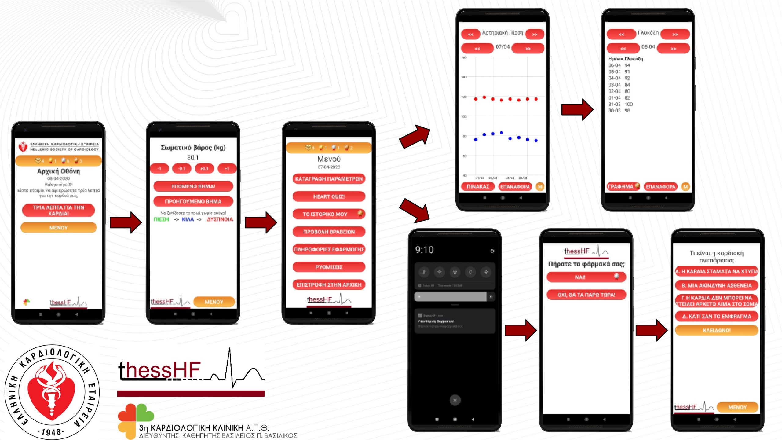 Η εφαρμογή ThessHF για smartphone ή tablet (προς το παρόν διαθέσιμη μόνο σε λογισμικό Android) αποτελεί μία υπηρεσία υπενθύμισης και εκπαίδευσης, ένα «προσωπικό ημερολόγιο» κάθε ασθενούς με καρδιακή ανεπάρκεια. H εφαρμογή αυτή στοχεύει να αποτελέσει έναν ψηφιακό βοηθό, που θα προσφέρει δύναμη στους ασθενείς και θα τους υπενθυμίζει να είναι συνεπείς, ώστε να διαχειριστούν αποτελεσματικότερα τη νόσο τους. Ήδη έχει διατεθεί και χρησιμοποιείται πιλοτικά από ασθενείς του Ιατρείου Καρδιακής Ανεπάρκειας της Γ΄ Καρδιολογικής Κλινικής του ΑΠΘ, με Διευθυντή τον Καθηγητή Βασίλειο Βασιλικό, με πολύ ικανοποιητικά αποτελέσματα.
