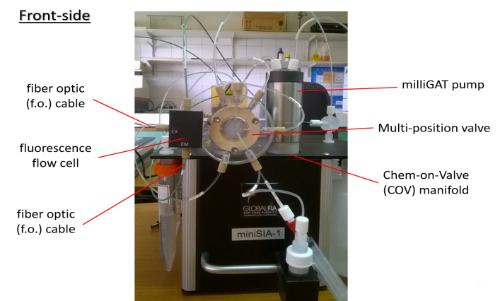 Εικόνες 1 και 2: On-line μέτρηση αμμωνιακών ιόντων στον Διεθνή Διαστημικό Σταθμό με υβριδικό σύστημα που συνδυάζει τεχνολογία εκλεκτικών ηλεκτροδίων με αναλυτές ροής  διαδοχικής έγχυσης σε συνδυασμό με φθορομετρικό αισθητήρα.