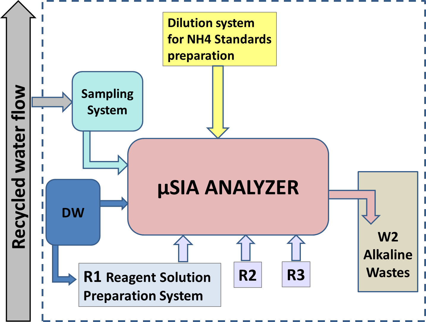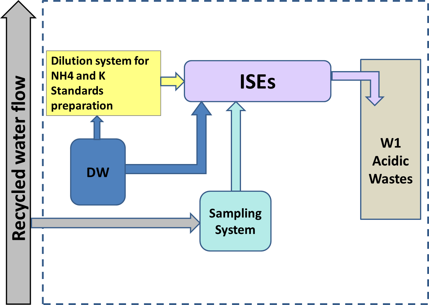 Η μεθοδολογία που προτάθηκε τελικά, η οποία επιτρέπει την ακριβή και χωρίς προβλήματα αυτοματοποιημένη μέτρηση των αμμωνιακών ιόντων on-line στον ΔΔΣ, αποτελεί ένα υβριδικό σύστημα που συνδυάζει τεχνολογία εκλεκτικών ηλεκτροδίων με αναλυτές ροής διαδοχικής έγχυσης σε συνδυασμό με φθορομετρικό αισθητήρα.