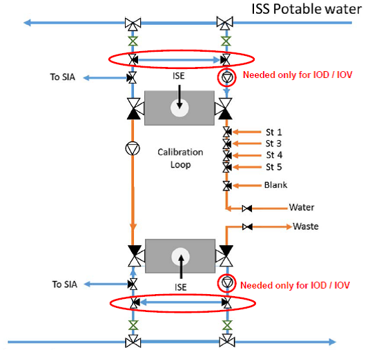 Εικόνες 5 και 6: Σχηματική απεικόνιση της εφαρμογής του υβριδικού αναλυτή στο δίκτυο νερού του Διεθνούς Διαστημικού Σταθμού.