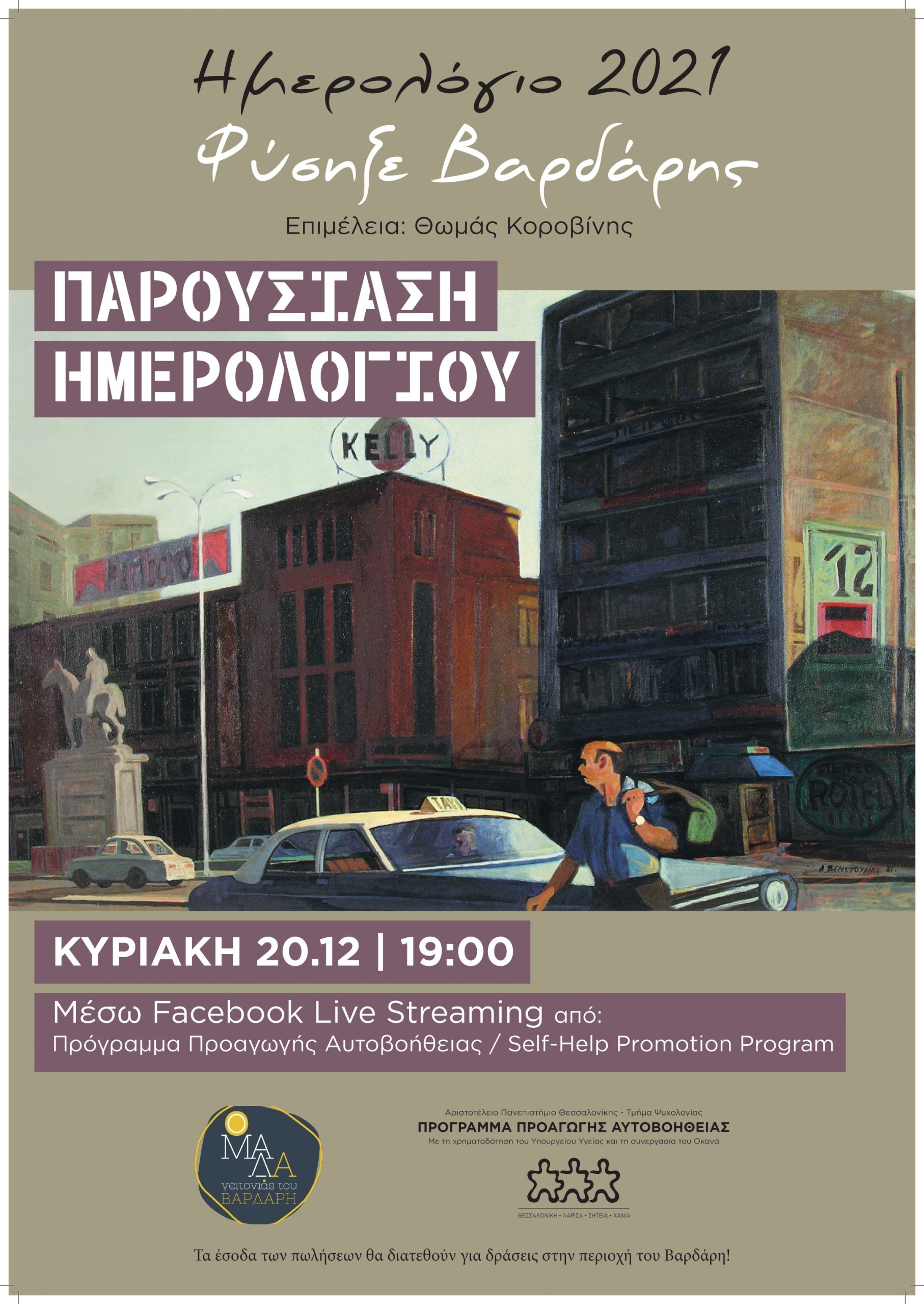 Το θεματικό ημερολόγιο «Φύσηξε Βαρδάρης 2021» της «Ομάδας Γειτονιάς του Βαρδάρη» από το Πρόγραμμα Προαγωγής Αυτοβοήθειας του ΑΠΘ παρουσιάζεται σε διαδικτυακή εκδήλωση που θα πραγματοποιηθεί την Κυριακή 20 Δεκεμβρίου 2020, στις 19.00.