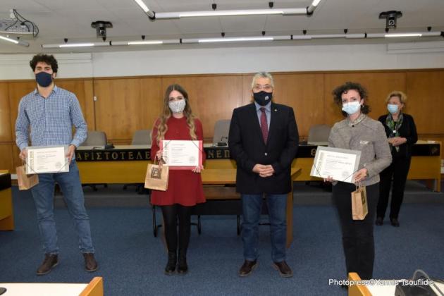 Ο Πρύτανης του ΑΠΘ απένειμε στα τρία μέλη της φοιτητικής κοινότητας τα πιστοποιητικά βράβευσής τους εκ μέρους του Δικτύου Πανεπιστημίων του Δρόμου του Μεταξιού (Silk-RoadUniversitiesNetwork-SUN) την Τρίτη 2 Φεβρουαρίου 2021.