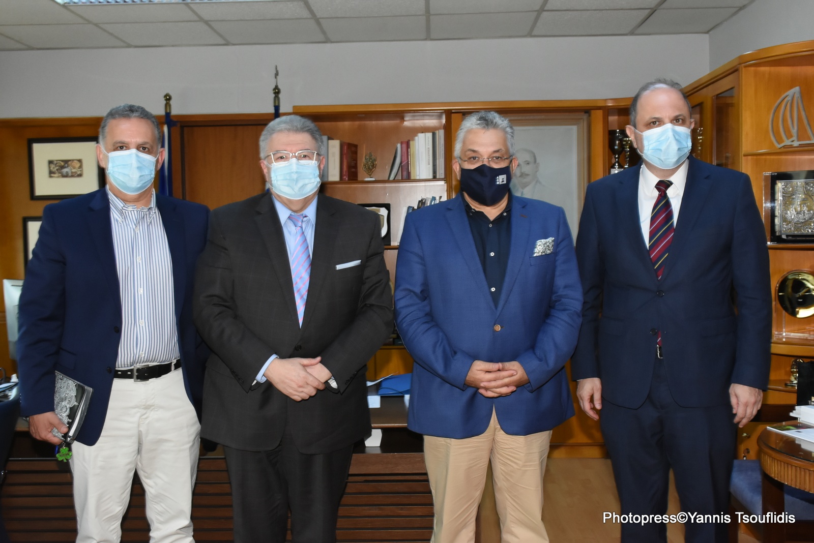 Φωτογραφία 2: (από αριστερά) ο Καθηγητής του Τμήματος Θεολογίας του ΑΠΘ Χρήστος Αραμπατζής, ο Γενικός Γραμματέας Απόδημου Ελληνισμού και Δημόσιας Διπλωματίας του Υπουργείου Εξωτερικών, Ιωάννης Χρυσουλάκης, ο Πρύτανης του ΑΠΘ, Καθηγητής Νικόλαος Γ. Παπαϊωάννου, και ο Πρόεδρος του Τμήματος Ιατρικής του ΑΠΘ, Καθηγητής Κυριάκος Αναστασιάδης.
