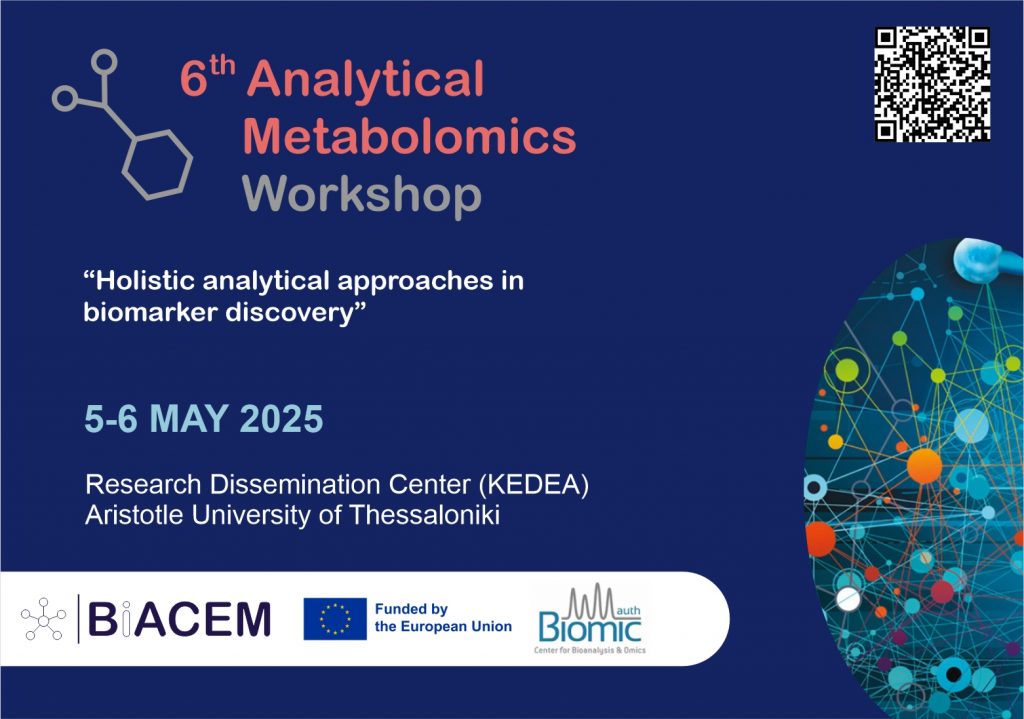 Η διεπιστημονική ομάδα BIOMIC του ΚΕΔΕΚ του Αριστοτέλειου Πανεπιστημίου Θεσσαλονίκης διοργανώνει το 6ο Διεθνές Workshop «Αναλυτικής Μεταβολομικής», τη Δευτέρα 5 και την Τρίτη 6 Μαΐου 2025, στο ΚΕΔΕΑ του ΑΠΘ.