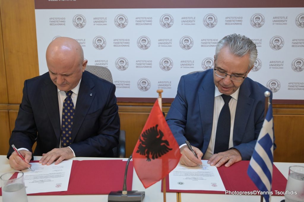Ανανεώθηκε για άλλα πέντε έτη η Συμφωνία Επιστημονικής Συνεργασίας που έχει συνάψει το Αριστοτέλειο Πανεπιστήμιο με το Γεωπονικό Πανεπιστήμιο Τιράνων (Agricultural University of Tirana). Τη Συμφωνία υπέγραψαν ο Πρύτανης του ΑΠΘ, Καθηγητής Δημήτριος Κωβαίος, και ο Πρύτανης του Γεωπονικού Πανεπιστημίου Τιράνων, Καθηγητής Fatbardh Sallaku, σήμερα Δευτέρα 23 Οκτωβρίου 2023, στην Αίθουσα της Συγκλήτου του ΑΠΘ.