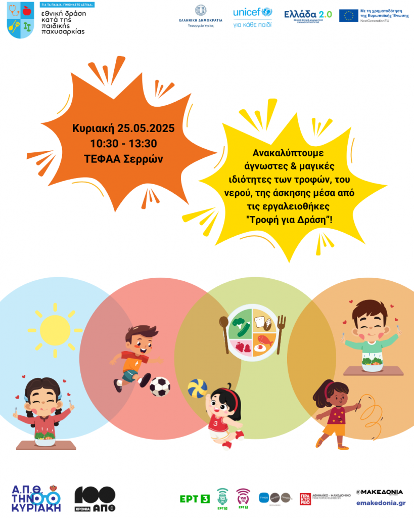 Η Εθνική Δράση για την Παιδική Παχυσαρκία αποτελεί μια πρωτοβουλία του Υπουργείου Υγείας, σε συνεργασία με τη UNICEF, που υλοποιείται στο πλαίσιο του Εθνικού Σχεδίου Ανάκαμψης και Ανθεκτικότητας «Ελλάδα 2.0» με τη χρηματοδότηση της Ευρωπαϊκής Ένωσης – NextGenerationEU. Πρόκειται για το πρώτο ολιστικό πρόγραμμα που εφαρμόζεται σε πανελλαδική κλίμακα και καλύπτει τις ανάγκες παιδιών από 0 έως 17 ετών και των οικογενειών τους, με έμφαση στην πρόληψη μέσω υγιεινής διατροφής και φυσικής δραστηριότητας.