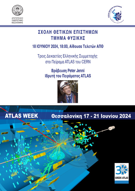 Το έτος 2024 σηματοδοτεί 70 χρόνια από την ίδρυση του CERN, του οποίου η Ελλάδα είναι ιδρυτικό μέλος. Στο πλαίσιο του Συνεδρίου, θα πραγματοποιηθεί ανοιχτή εκδήλωση για τον εορτασμό της συμπλήρωσης 30 χρόνων της ελληνικής συμμετοχής στο πείραμα ATLAS. Στην εκδήλωση, η Κοσμητεία της Σχολής Θετικών Επιστημών του ΑΠΘ θα τιμήσει τον Ιδρυτή του Πειράματος ATLAS, Καθηγητή Peter Jenni, για την πολύτιμη συμβολή του στην επιστήμη, την κοινωνική προσφορά του αλλά και τη στήριξή του στη σημαντική συνεισφορά του ΑΠΘ στο Πείραμα ATLAS.