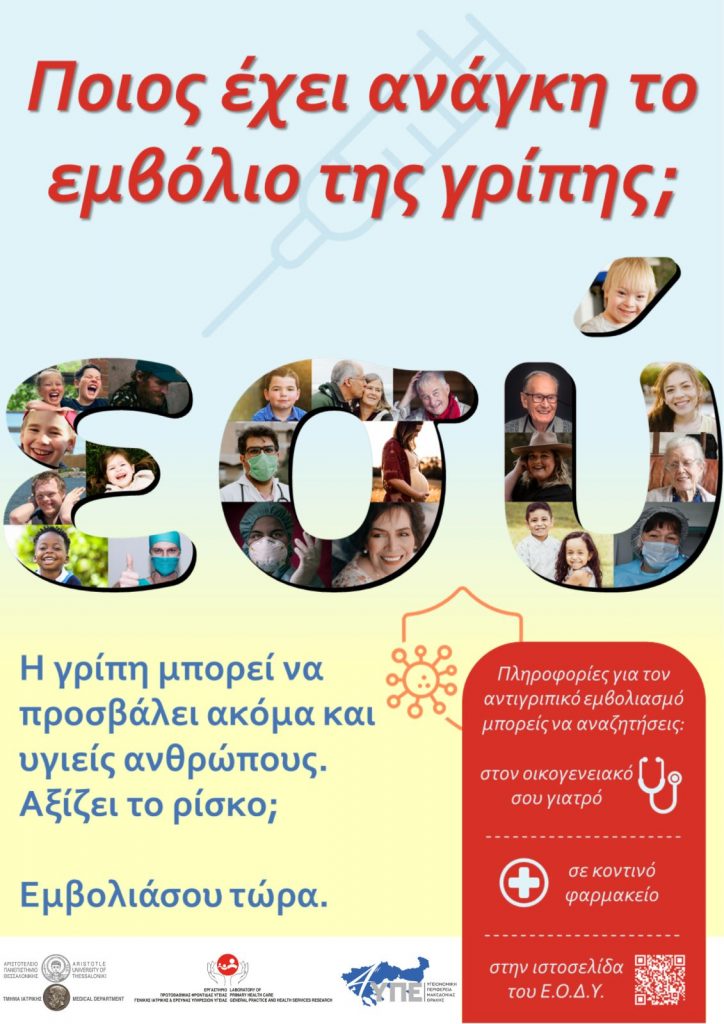 Το Εργαστήριο Πρωτοβάθμιας Φροντίδας Υγείας, Γενικής Ιατρικής και Έρευνας Υπηρεσιών Υγείας του Τμήματος Ιατρικής του ΑΠΘ διοργάνωσε, στο πλαίσιο της περιόδου εμβολιασμού 2023/2024 για την εποχική γρίπη, μία σειρά δράσεων ενημέρωσης και ευαισθητοποίησης των φοιτητών και φοιτητριών του Τμήματος Ιατρικής, των επαγγελματιών υγείας μονάδων Πρωτοβάθμιας Φροντίδας Υγείας (ΠΦΥ) και του γενικού πληθυσμού, με απώτερο σκοπό την ευαισθητοποίηση και την αύξηση της εμβολιαστικής κάλυψης. Η πρωτοβουλία πραγματοποιήθηκε τους μήνες Οκτώβριο με Δεκέμβριο 2023 και περιελάβανε τις ακόλουθες δράσεις.