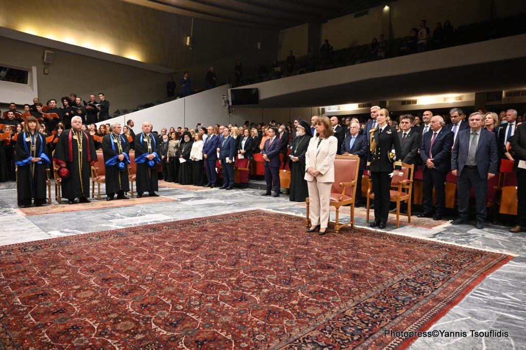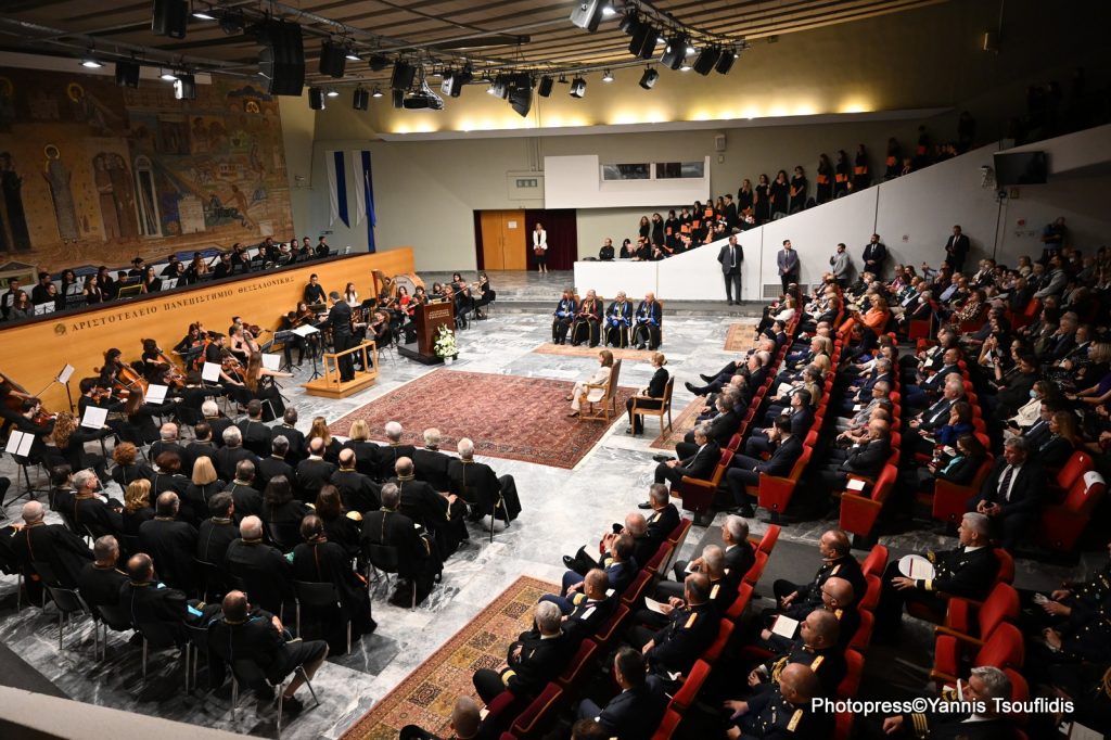 Παρουσία της Προέδρου της Δημοκρατίας, Κατερίνας Σακελλαροπούλου, πραγματοποιήθηκε σήμερα, Τετάρτη 26 Οκτωβρίου 2022, στην Αίθουσα Τελετών του ΑΠΘ, ο επίσημος εορτασμός της Ημέρας του Πολιούχου της Θεσσαλονίκης Αγίου Δημητρίου, της 110ης Επετείου της Απελευθέρωσης της πόλης και του Έπους του ’40.