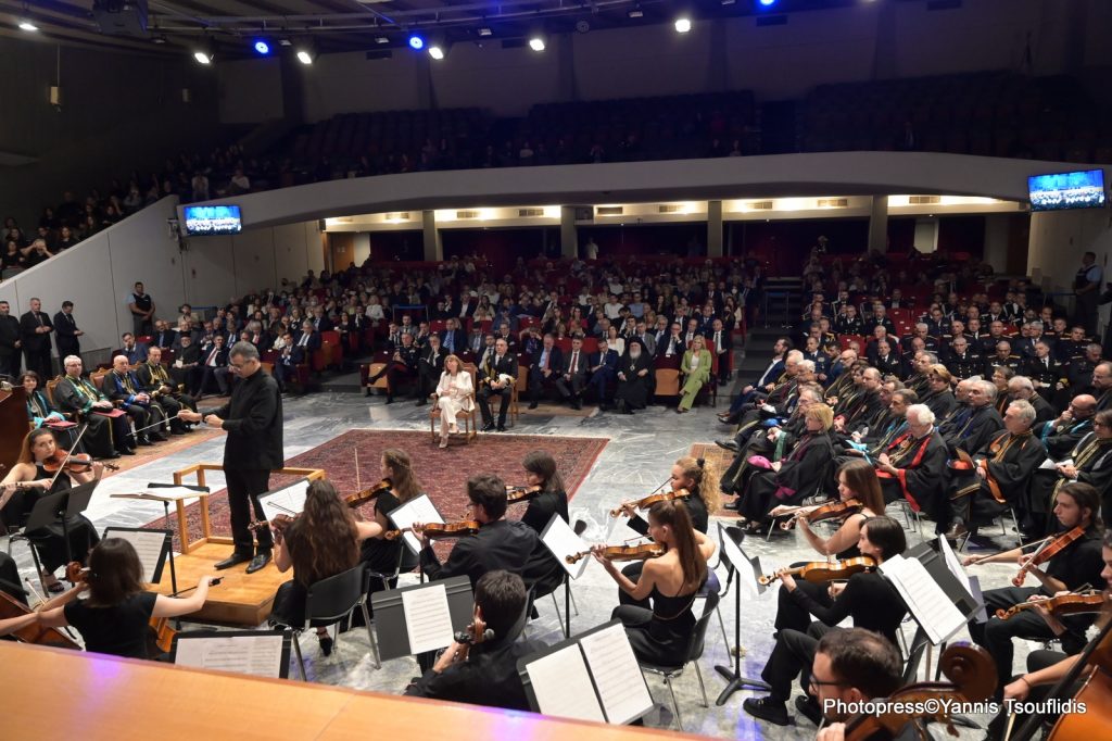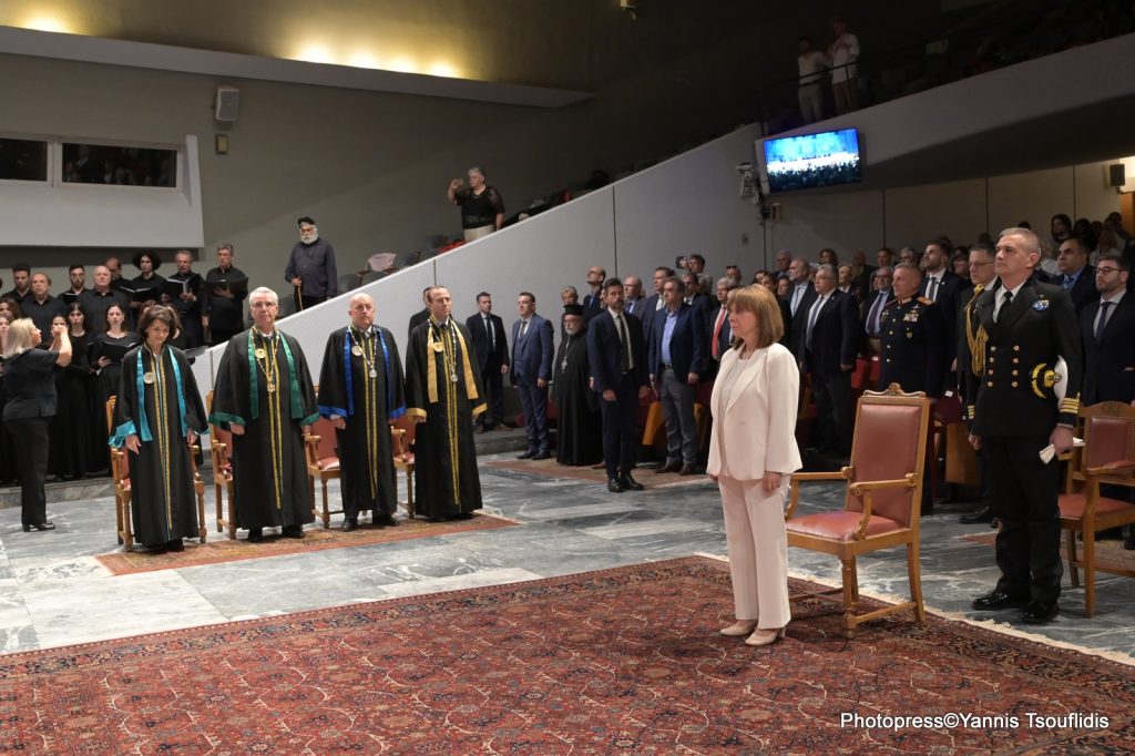 Παρουσία της Προέδρου της Δημοκρατίας, Κατερίνας Σακελλαροπούλου, πραγματοποιήθηκε στην Αίθουσα Τελετών του ΑΠΘ, ο επίσημος εορτασμός της Ημέρας του Πολιούχου της Θεσσαλονίκης Αγίου Δημητρίου, της 111ης Επετείου της Απελευθέρωσης της πόλης και του Έπους του ’40.