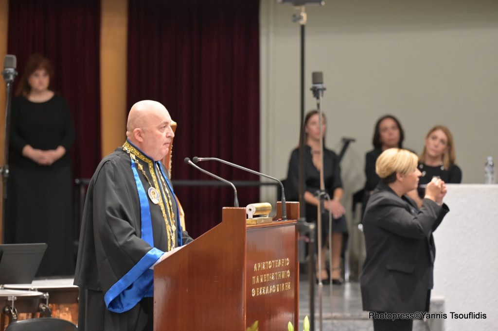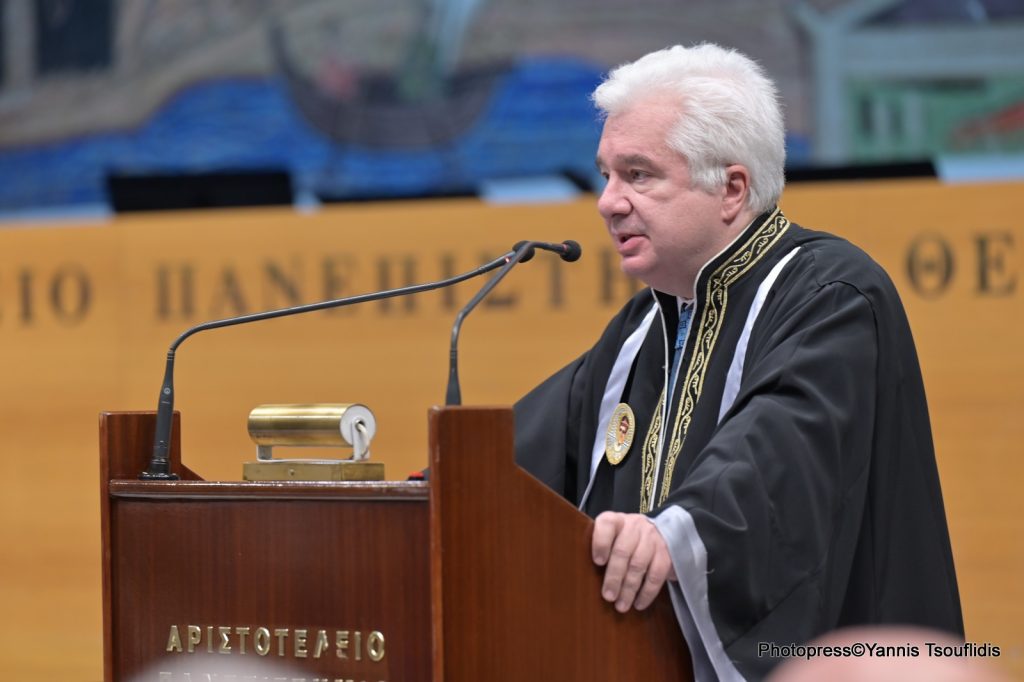 Τέλος, ο Πρύτανης του ΑΠΘ επισήμανε ότι η εκπαίδευση, όπως έπραξε το Δημόσιο Πανεπιστήμιο από συστάσεως του Νεότερου Ελληνικού Κράτους, αποτελεί βασικό εργαλείο ανασυγκρότησης και θεμελίωσης της κοινωνίας σε περιόδους κρίσης.