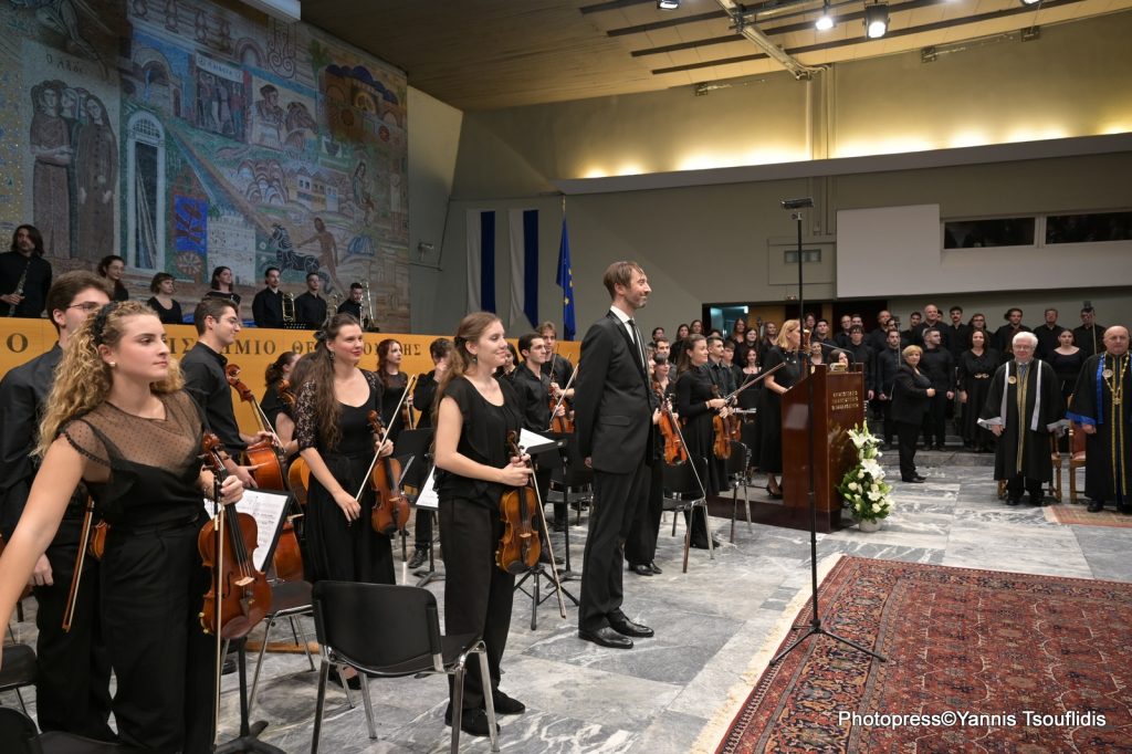 Η Τελετή του εορτασμού της 26ης Οκτωβρίου ολοκληρώθηκε με τον Εθνικό Ύμνο από τα μουσικά σύνολα του ΑΠΘ.