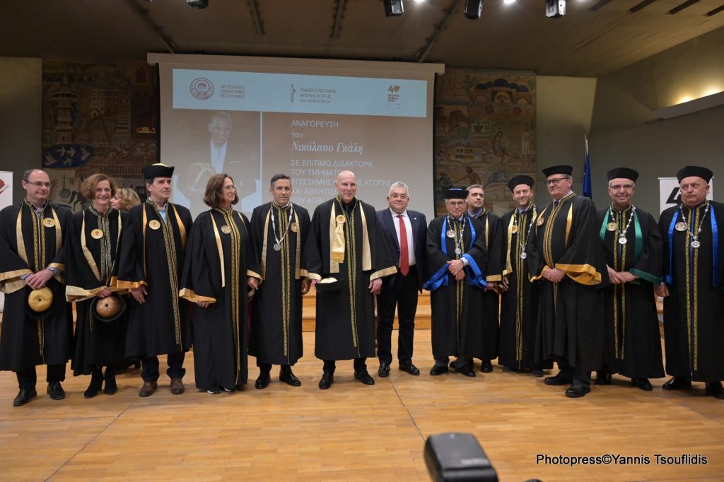 Επίτιμος Διδάκτορας του Τμήματος Επιστήμης Φυσικής Αγωγής και Αθλητισμού του ΑΠΘ αναγορεύτηκε ο κ. Νικόλαος Γκάλης, ως εξέχουσα και διαπρεπής προσωπικότητα, για την εξαιρετική προσφορά του στον αθλητισμό και τον πολιτισμό, καθώς και για τις πολύτιμες υπηρεσίες που προσέφερε στην κοινωνία. Η Τελετή Αναγόρευσης πραγματοποιήθηκε σήμερα, Τρίτη 2 Μαΐου 2023, στην Αίθουσα Τελετών του ΑΠΘ.