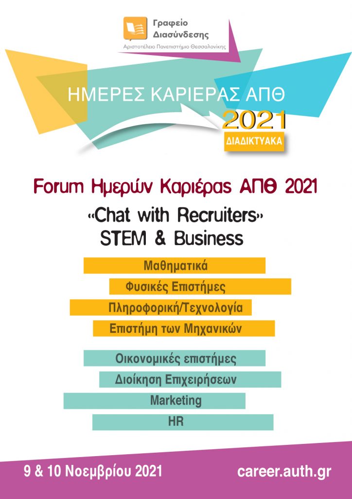 Περισσότερες πληροφορίες και εγγραφές στην ιστοσελίδα της εκδήλωσης: https://career.auth.gr/careerdays2021/