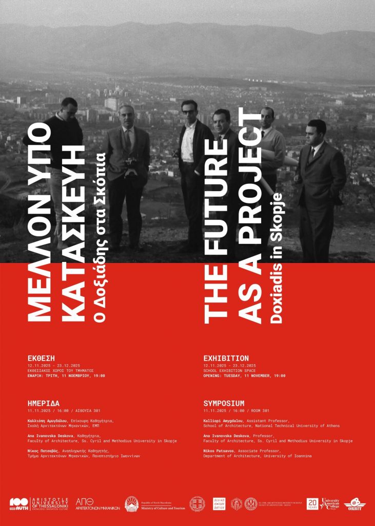 Το Τμήμα Αρχιτεκτόνων Μηχανικών του Αριστοτέλειου Πανεπιστήμιου, διοργανώνει Έκθεση και Ημερίδα, με τίτλο: «Μέλλον υπό Κατασκευή: Ο Δοξιάδης στα Σκόπια», την Τρίτη 11 Νοεμβρίου 2025, στην Πολυτεχνική Σχολή.