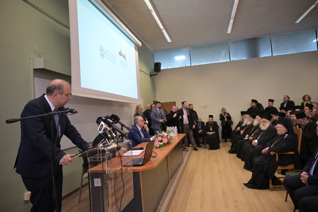 Ανάμεσα στους ομιλητές ήταν η Αυτού Θειοτάτη Παναγιότης, ο Αρχιεπίσκοπος Κωνσταντινουπόλεως, Νέας Ρώμης και Οικουμενικός Πατριάρχης κ.κ. Βαρθολομαίος Α΄, ο Πρύτανης του Αριστοτελείου Πανεπιστημίου, Καθηγητής Κυριάκος Αναστασιάδης, ο Πρόεδρος Τμήματος Θεολογίας Ηλίας Ευαγγέλου, ο Υφυπουργός Παιδείας Νίκος Παπαϊωάννου, ο Υφυπουργός Εσωτερικών (Μακεδονίας Θράκης) Κώστας Γκιουλέκας, ο Γενικός Γραμματέας Θρησκευμάτων Γεώργιος Καρατζής, ο Μητροπολίτης Θεσσαλονίκης Θεόφιλος, ο Μητροπολίτης Νεαπόλεως Σταυρουπόλεως, Βαρνάβας και ο Μητροπολίτης Νέας Κρήνης και Καλαμαριάς Ιουστίνος.