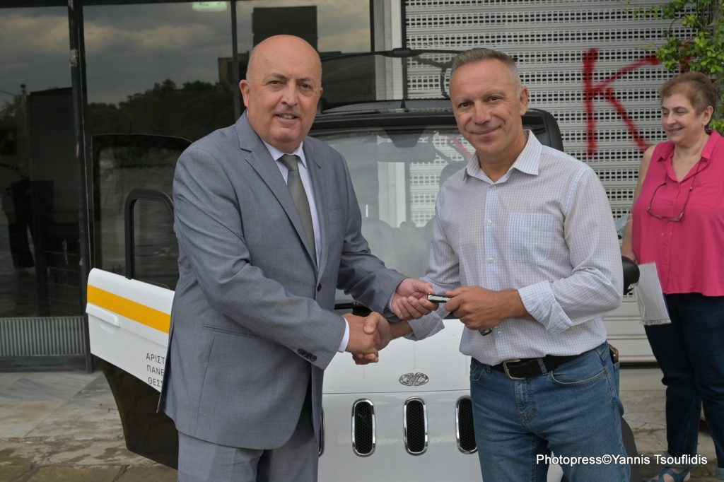 Σήμερα, Τρίτη 5 Σεπτεμβρίου 2023, παρελήφθη από τον Αντιπρύτανη Οικονομικών, Προγραμματισμού και Ανάπτυξης, Καθηγητή Χαράλαμπο Φείδα, τον Προϊστάμενο της Γενικής Διεύθυνσης Τεχνικών Υπηρεσιών και Μηχανοργάνωσης κ. Νικόλαο Μανουσαρίδη, την Προϊσταμένη της Διεύθυνσης Συντήρησης και Λειτουργίας Εγκαταστάσεων κα Αγγελική Σαλονικίδου, και τα μέλη της Επιτροπής Παραλαβής. το διθέσιο ηλεκτρικό αυτοκίνητο, ενώ μέχρι το τέλος του χρόνου αναμένεται η παραλαβή του πενταθέσιου ηλεκτρικού αυτοκινήτου.