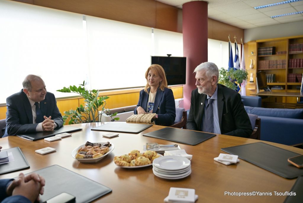 Στο επίκεντρο της συζήτησης βρέθηκαν η ενίσχυση της εξωστρέφειας του Αριστοτελείου, η εκπαιδευτική διπλωματία και οι πρωτοβουλίες που αναπτύσσει το Πανεπιστήμιο για τη διασύνδεσή του με τον ελληνισμό της διασποράς.