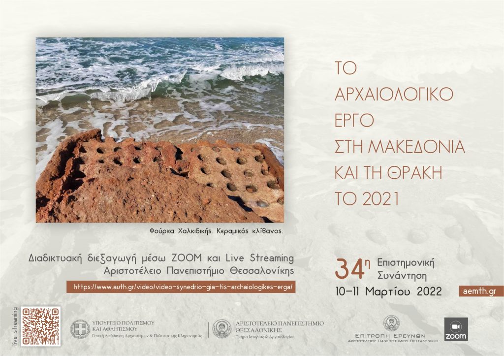 Αρχαιολόγοι της Αρχαιολογικής Υπηρεσίας, των Πανεπιστημίων και των ξένων Αρχαιολογικών Σχολών θα παρουσιάσουν, για 34η φορά, τα αποτελέσματα των ανασκαφών τους, την αρχαιολογική και αρχαιομετρική τεκμηρίωση των δεδομένων τους και τα έργα ανάδειξης των μνημείων στη Μακεδονία και τη Θράκη.