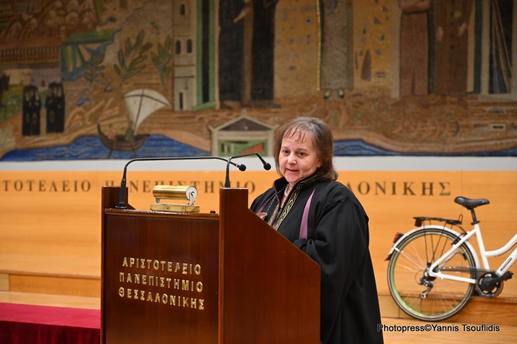 Στον πανηγυρικό της ημέρας, με τίτλο «Η αρετή της αριστείας στον αρχαίο κόσμο και η αριστεία της αρετής στους Τρεις Ιεράρχες», η Καθηγήτρια του Τμήματος Κοινωνικής Θεολογίας και Χριστιανικού Πολιτισμού της Θεολογικής Σχολής του ΑΠΘ Κυριακούλα Παπαδημητρίου, ανέδειξε το μεγάλο επίτευγμα των Τριών Ιεραρχών στη σύζευξη της αρχαίας σοφίας με τη σοφία του λόγου του Θεού ως προς το θέμα ειδικά της αριστείας, που συνδέεται άρρηκτα με την Παιδεία. «Η έννοια της αριστείας βρίσκεται σήμερα στο κέντρο του κοινωνικού διαλόγου και το ζήτημα της αρετής αποτελεί στην εποχή μας ένα από τα τρέχοντα ζητήματα της φιλοσοφικής συζήτησης για την αρεταλογία ως ένα εναλλακτικό ‘παράδειγμα’ της ηθικής φιλοσοφίας. Είναι, γι’ αυτό, ενδιαφέρον να παρουσιασθεί, έστω αδρά, η μοναδική πνευματική σύνθεση του θέματος, που ο Μέγας Βασίλειος, ο Γρηγόριος ο Θεολόγος και ο Ιωάννης ο Χρυσόστομος προσέφεραν στον πολιτισμό μας» τόνισε.