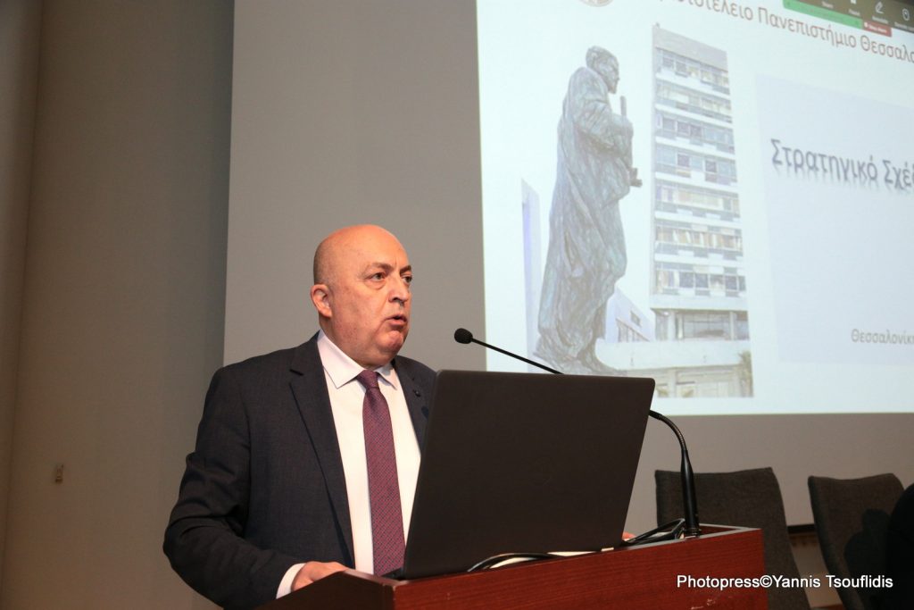 Τις πτυχές του στρατηγικού σχεδιασμού ανάπτυξης του ΑΠΘ σε όλους τους τομείς δραστηριότητας του (εκπαιδευτική και ερευνητική πολιτική, οικονομική πολιτική και ανάπτυξη, διά βίου μάθηση και εκπαίδευση, εξωστρέφεια και διεθνοποίηση του Ιδρύματος, σύνδεση με την κοινωνία και την οικονομία και ενίσχυση της καινοτομίας, και αναβάθμιση της ποιότητας του ακαδημαϊκού περιβάλλοντος) ανέπτυξαν οι αντιπρυτάνεις του ΑΠΘ, Κύρος Υάκινθος, Γεώργιος Τζέτζης, Δημήτριος Κουσενίδης και Στέλλα Λάββα. Ο Εκτελεστικός Διευθυντής του ΑΠΘ Ιωάννης Σαλματζίδης παρουσίασε τη μεθοδολογία παρακολούθησης της εφαρμογής του σχεδίου και η Χαρισία Βλάχου τον απολογισμό του έργου υποστήριξης της Μονάδας Στρατηγικού Σχεδιασμού.