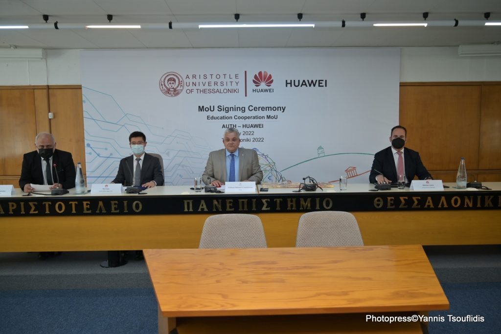 Μνημόνιο Συνεργασίας υπέγραψαν το Αριστοτέλειο Πανεπιστήμιο Θεσσαλονίκης και η εταιρεία Ηuawei Technologies S.A., σήμερα, Δευτέρα 9 Μαΐου 2022. Το Μνημόνιο Συνεργασίας υπέγραψαν ο Πρύτανης του ΑΠΘ, Καθηγητής Νικόλαος Γ. Παπαϊωάννου, και ο Διευθύνων Σύμβουλος της Huawei Technologies S.A., Huang Hongqi.