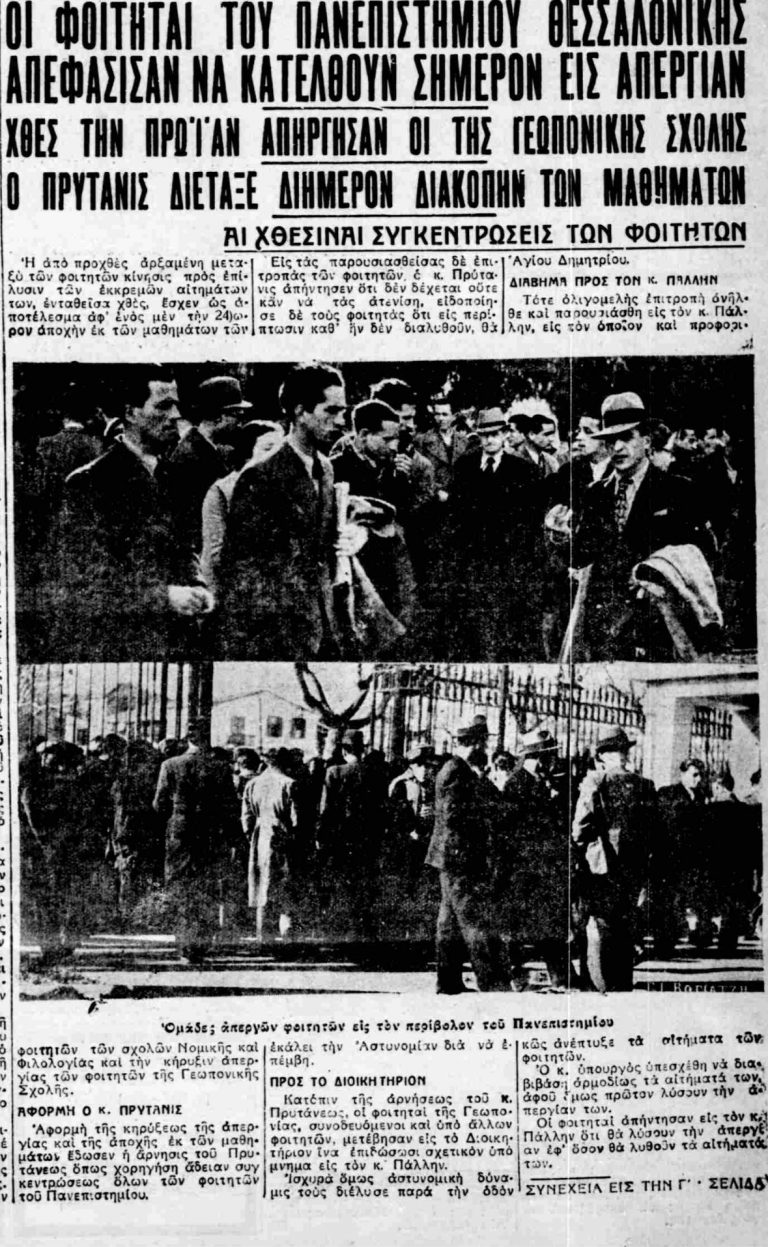 Φοιτητική συγκέντρωση μπροστά στο Πανεπιστήμιο, επέμβαση της Χωροφυλακής. Τραυματισμοί, συλλήψεις και αποβολές φοιτητών (Δικτατορία Ι. Μεταξά).