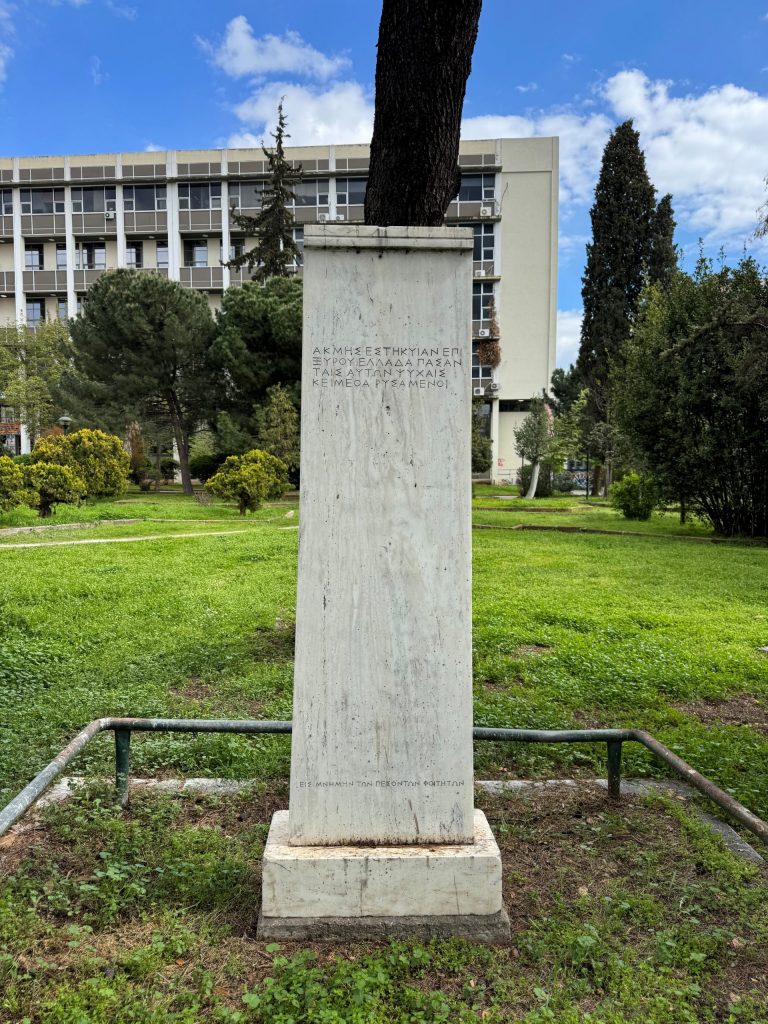 Τοποθέτηση τιμητικής στήλης στην Πανεπιστημιούπολη για τους πεσόντες φοιτητές.