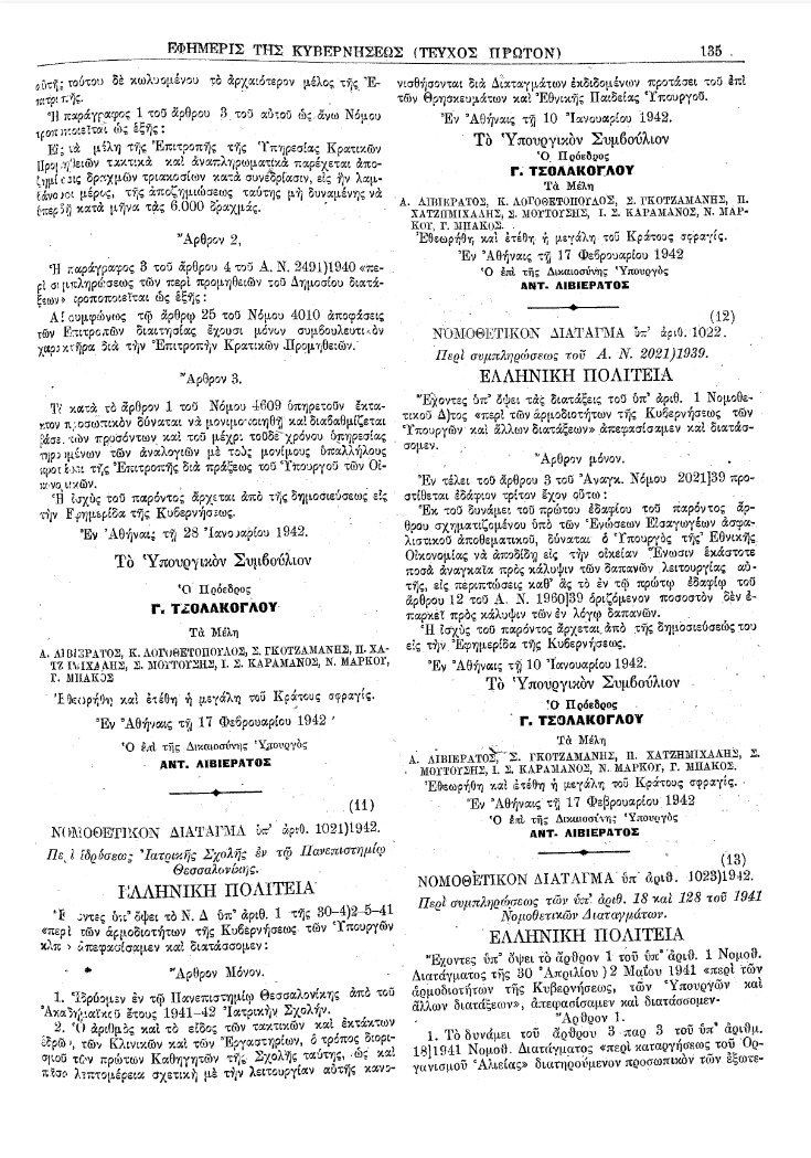 Ίδρυση Σχολής Νομικών και Οικονομικών Επιστημών και Πανεπιστημιακής Βιβλιοθήκης.