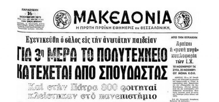 Εξέγερση των φοιτητών με επίκεντρο την Πολυτεχνική Σχολή. Κατάληψη του Πολυτεχνείου και συλλήψεις δεκάδων φοιτητών/τριών (Νοέμβριος).