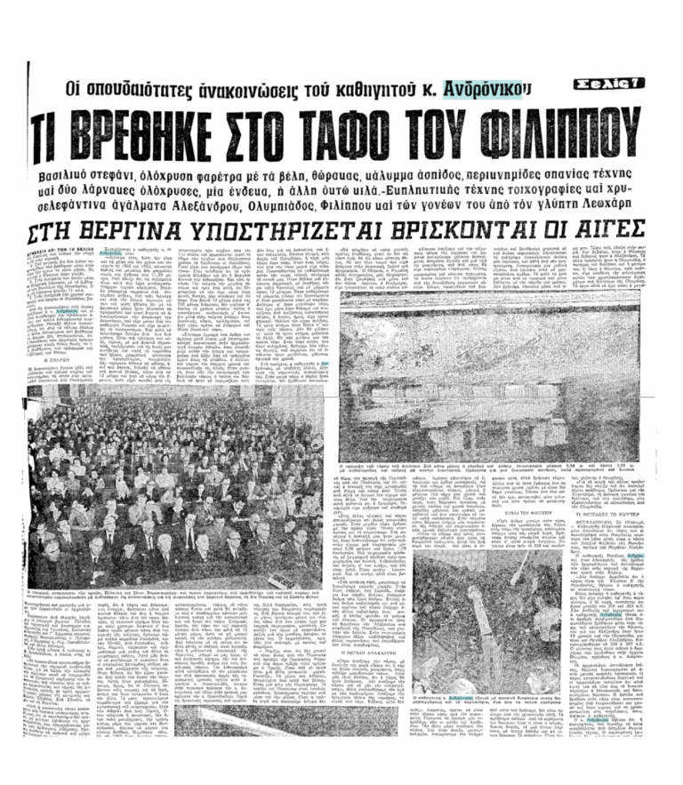 Ο αρχαιολόγος Μανόλης Ανδρόνικος, καθηγητής της Φιλοσοφικής Σχολής, ανακοινώνει την ανακάλυψη των βασιλικών τάφων της Βεργίνας.